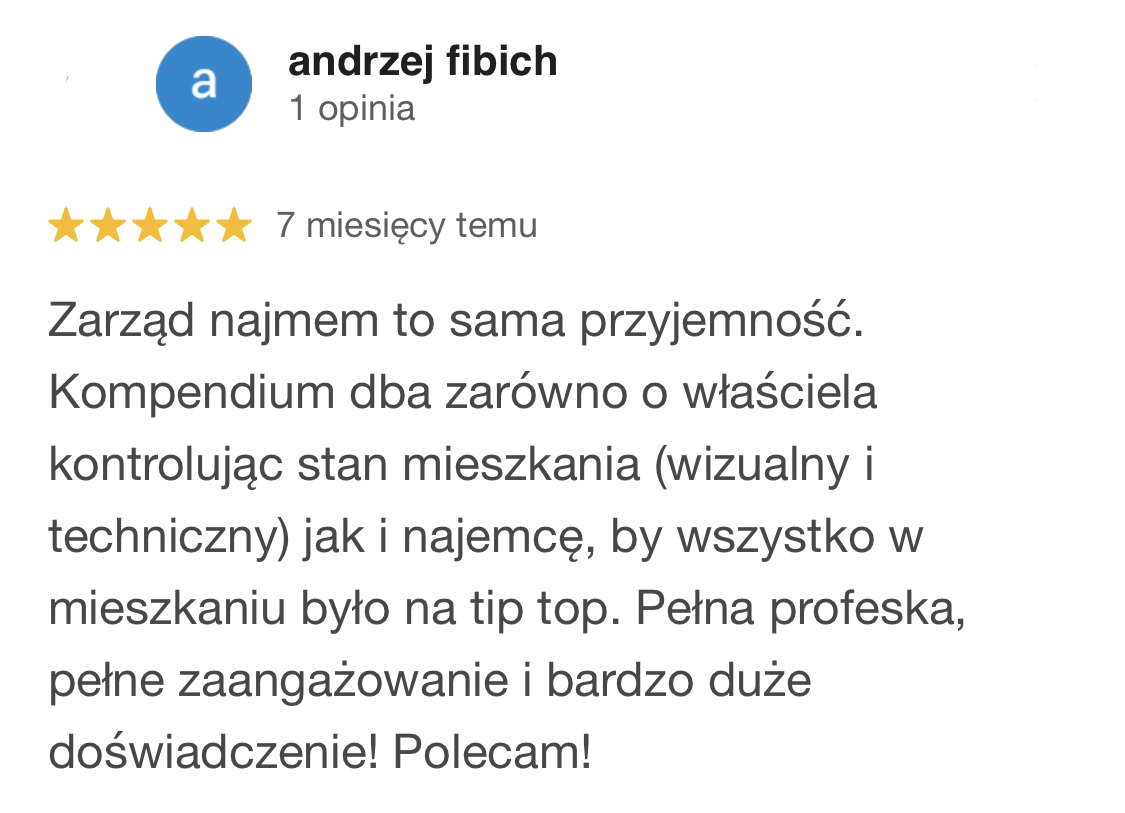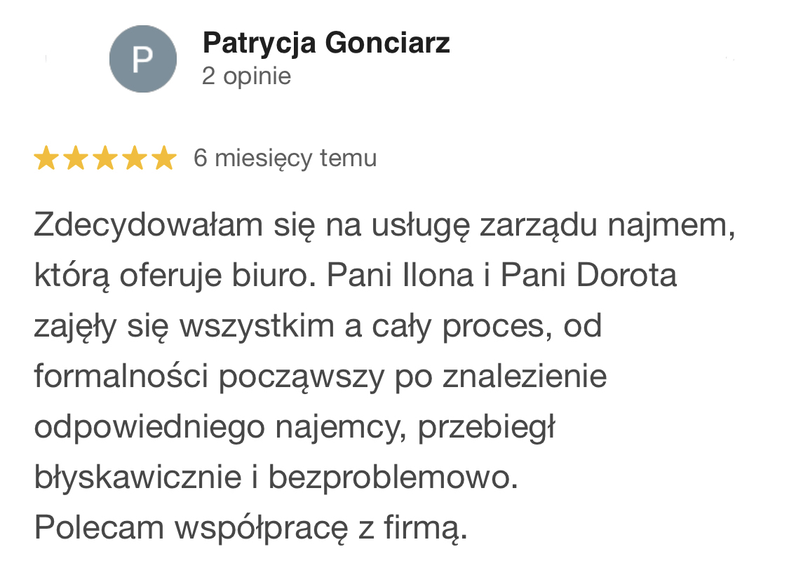 Pod tym hasłem kryje się wszystko co niezbędne dla dobra lokalu i jego Właściciela oraz wiele więcej! Obsługujemy awarie, usterki oraz remonty. Posiadamy własny serwis techniczny gotowy do działania 24h/dobę. Kontrolujemy stan techniczny lokalu. Organizujemy wizje lokalne. Prowadzimy księgowość, zajmujemy się wszelkimi rozliczeniami. Opiekujemy się Najemcą oraz współpracujemy z administracją budynku i ubezpieczycielem lokalu. Zapewniamy dedykowanego opiekuna, posiadającego licencję Zarządcy Nieruchomości. Bierzemy pełną odpowiedzialność za nasze działania i ich konsekwencje.
